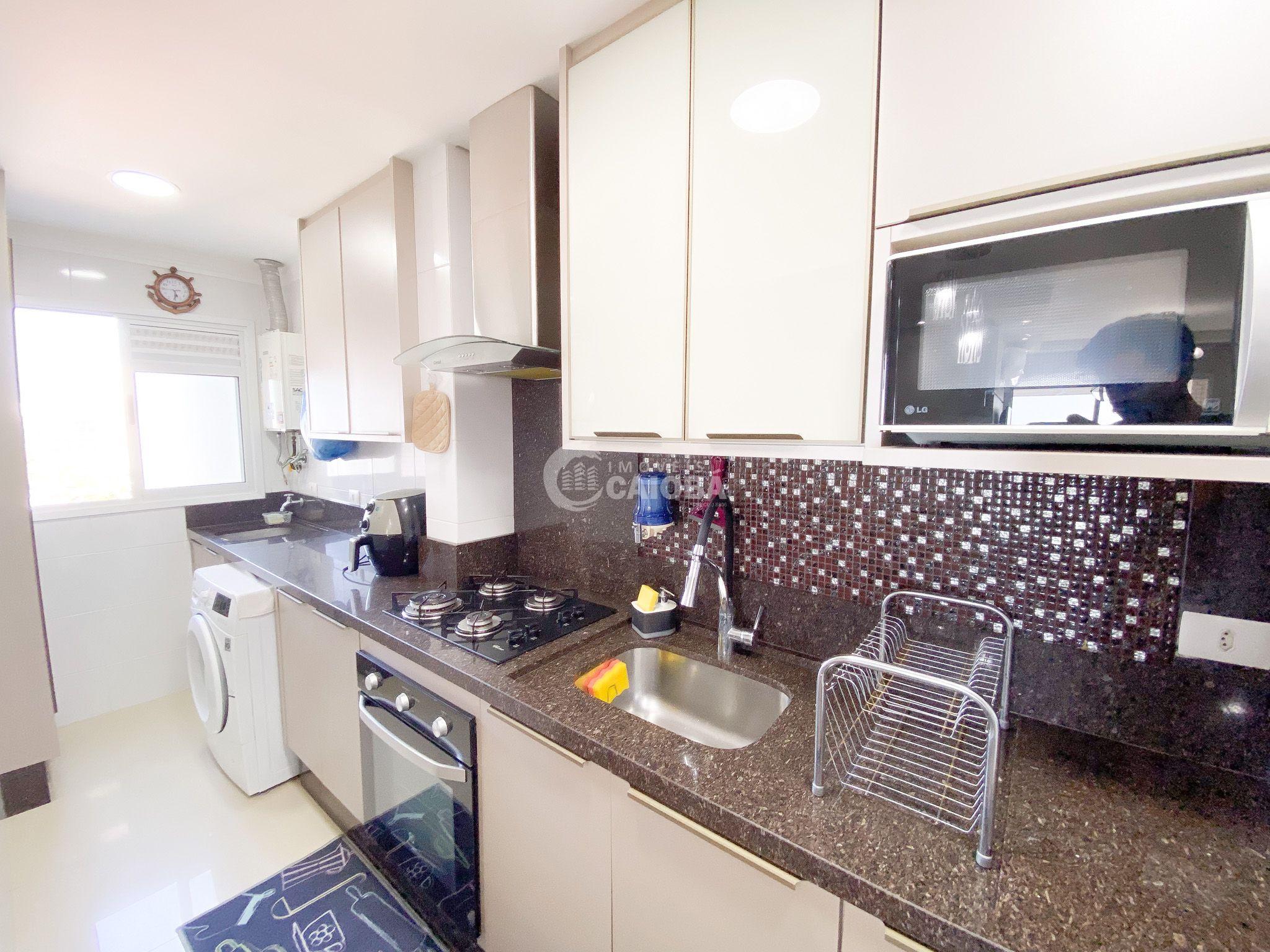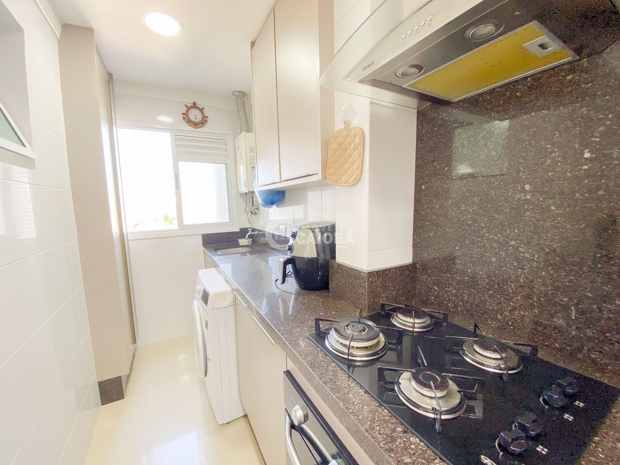 São 3 quartos, Sala, Cozinha, Sala de Jantar, WC Social, Lavanderia, Sacada com Churrasqueira com VISTA PARA A PRAIA E ORLA DE CAIOBA.