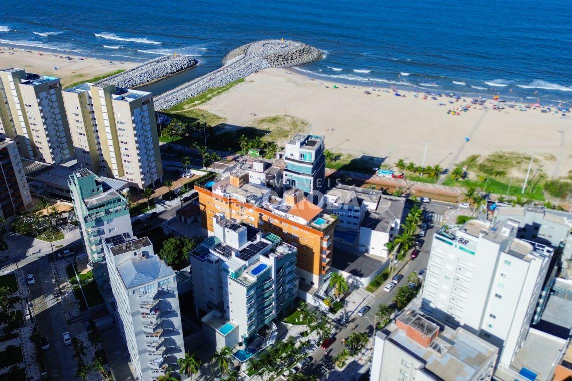 Destaques do imóvel com 03 dormitórios (sendo 01 suíte com sacada), sala de estar e jantar ampla e integrada, sacada com uma linda vista para o mar, cozinha, área de serviço, 03 vagas de garagem (02 de porte médio) com box de praia.