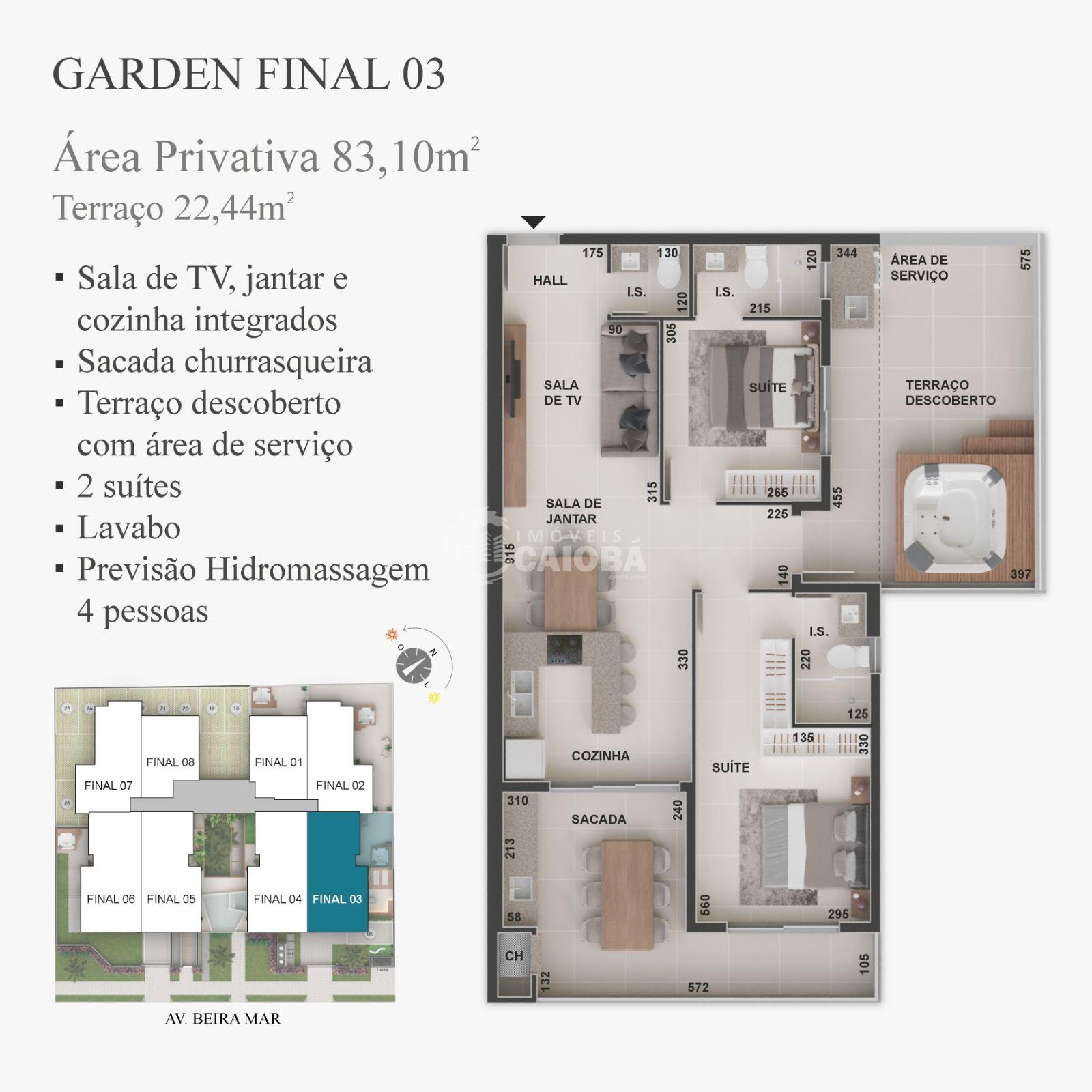 - Unidade nº 303 com 83,10m² de área coberta + 22,44 de Terraço e 105,5m² de Área Total