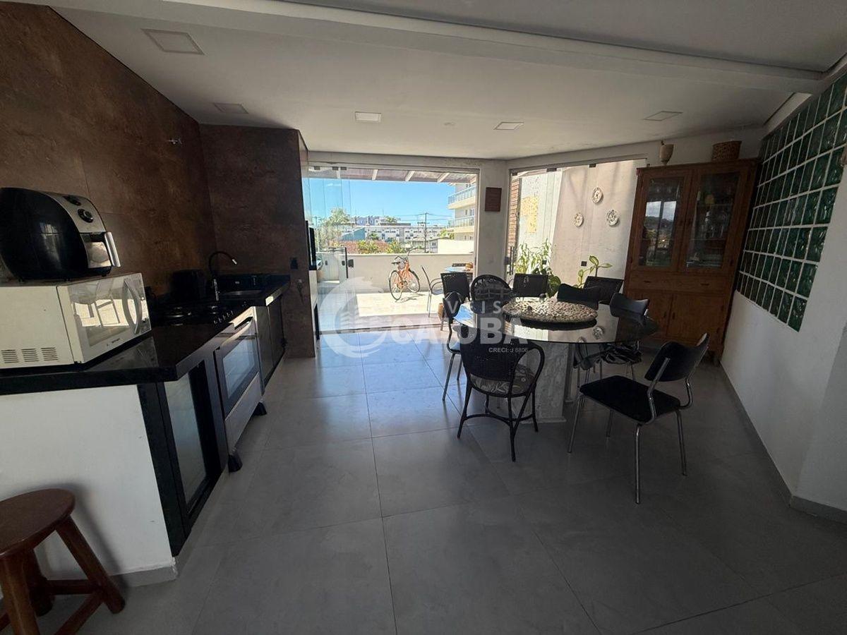Cozinha e área gourmet integradas, com amplo espaço e sacada
