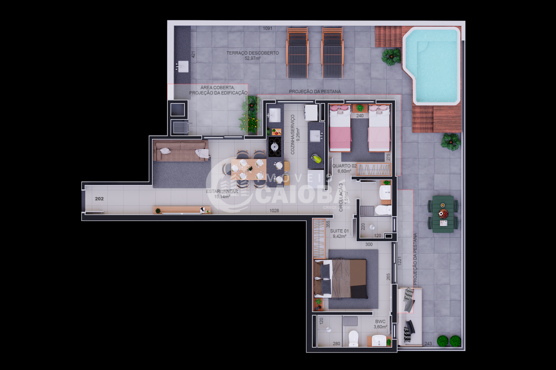 - Piscina e churrasqueira;